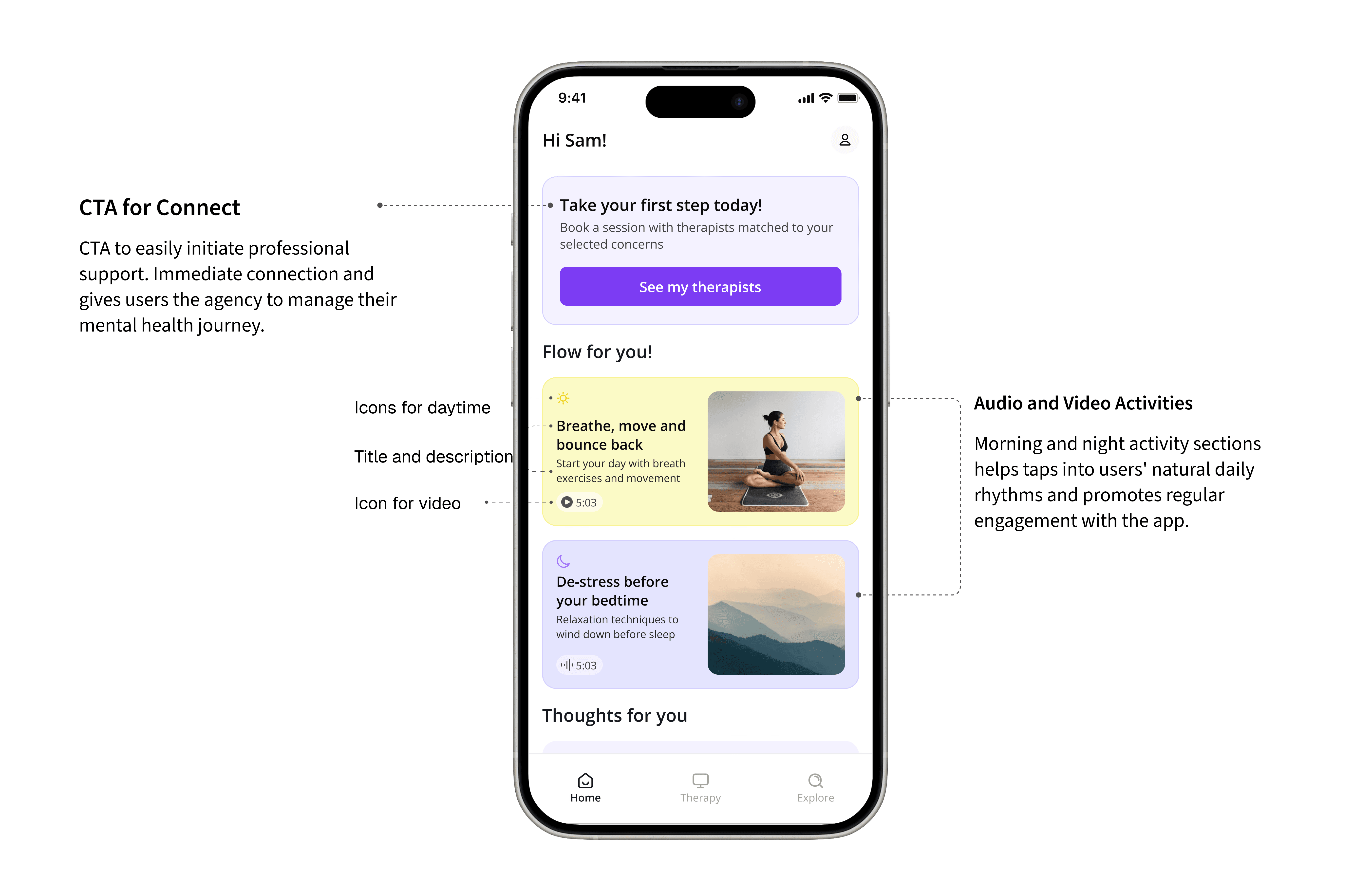 Mental health isn't just therapy. Users need a combination of professional guidance and daily self-care practices.