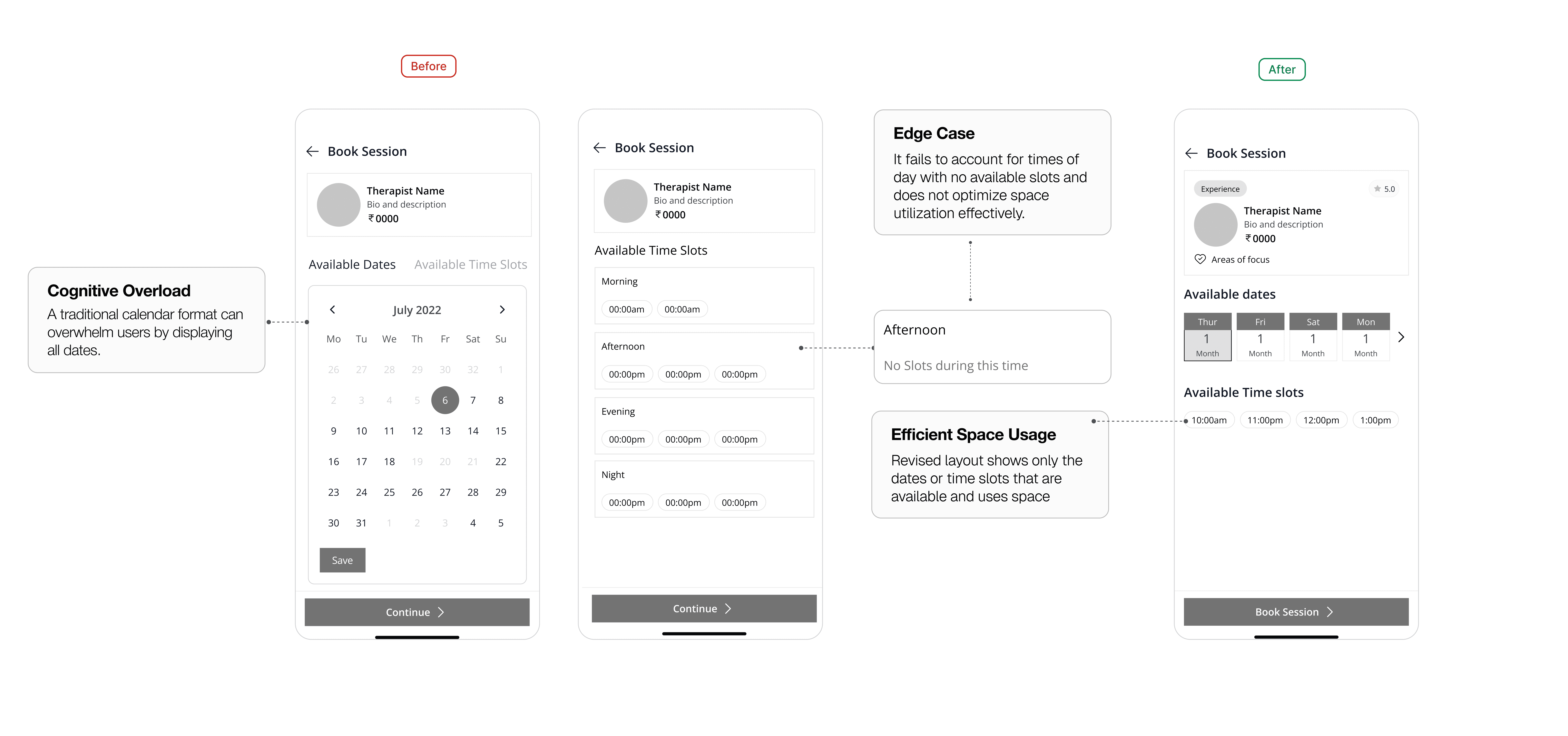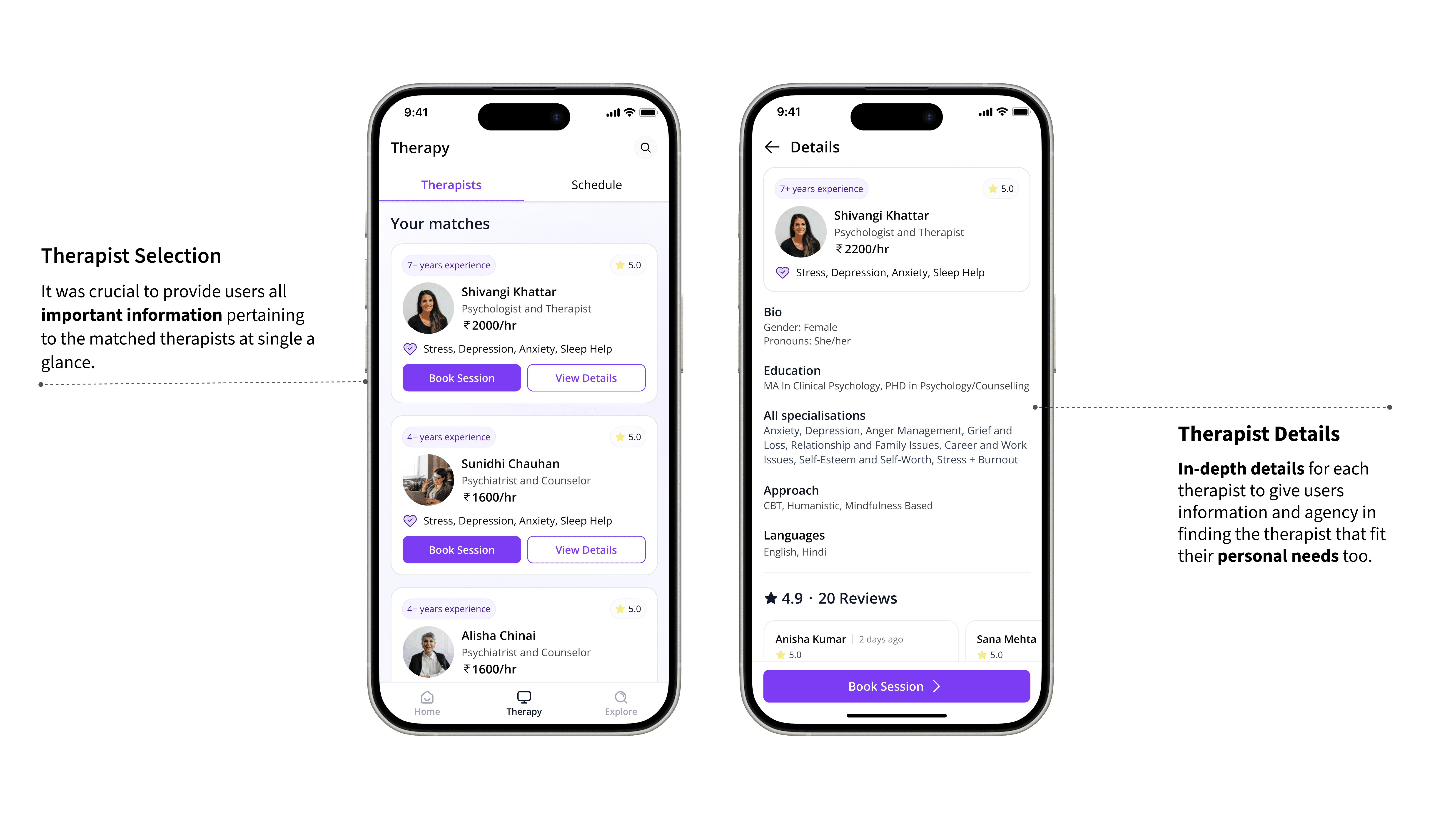 It was crucial to give users access to all important information pertaining to therapists in order to give them agency and flexibility in decision-making and choosing the therapist best suited for them.