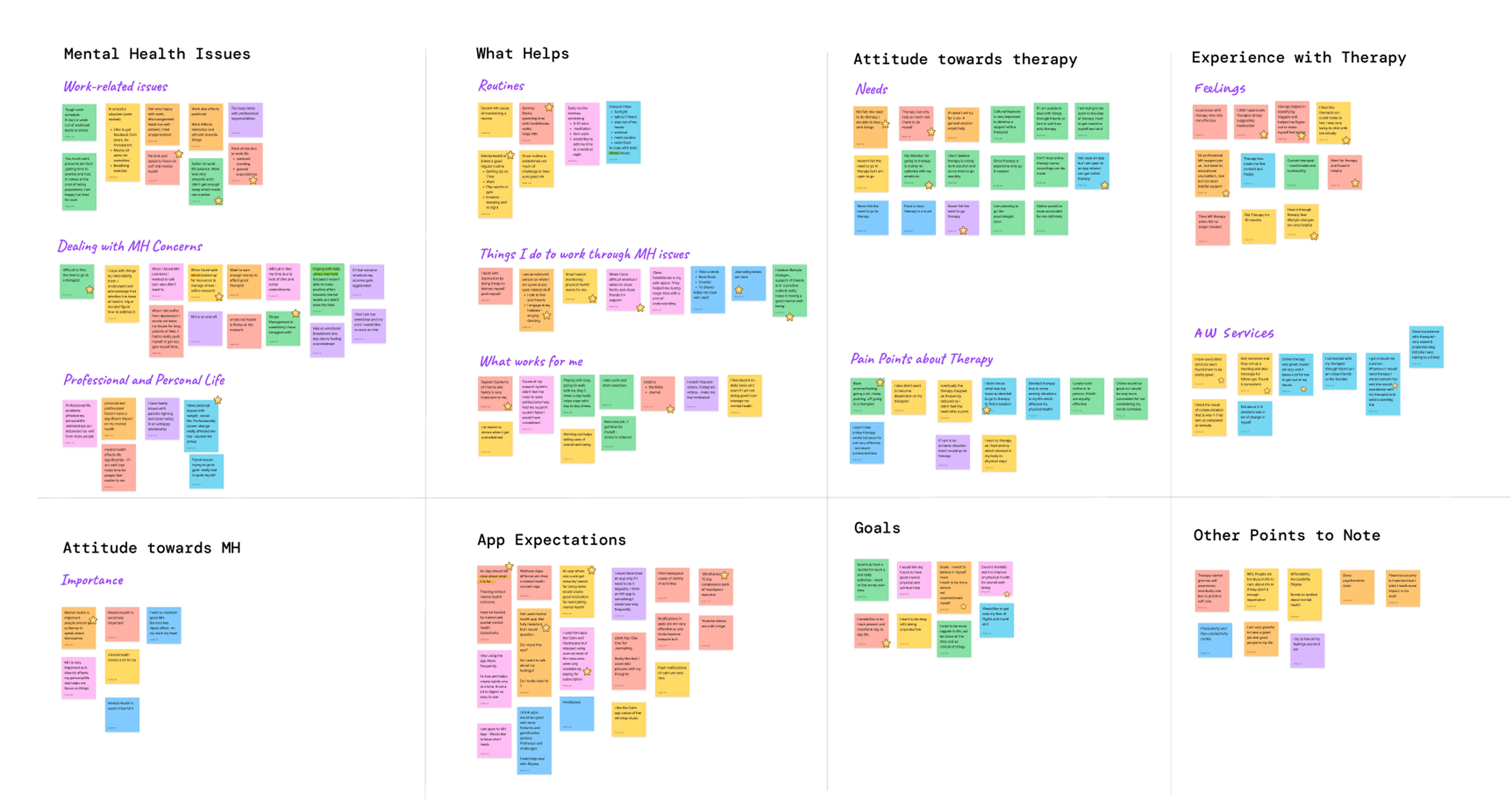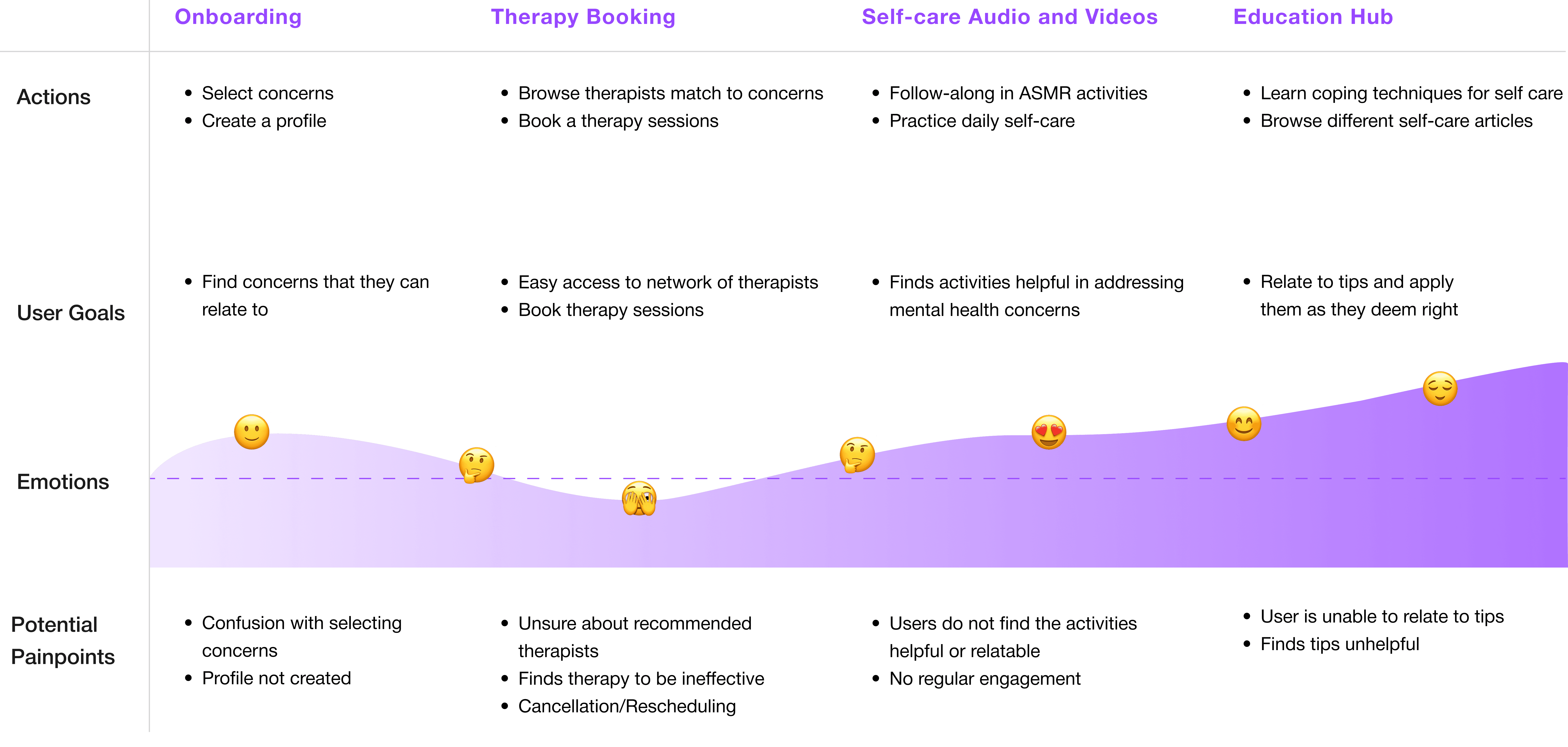 After an initial examination of the current business process, I conducted extensive user research to identify the key pain points and needs of existing and potential users, aiming to understand their struggles and approaches to managing their mental well-being.