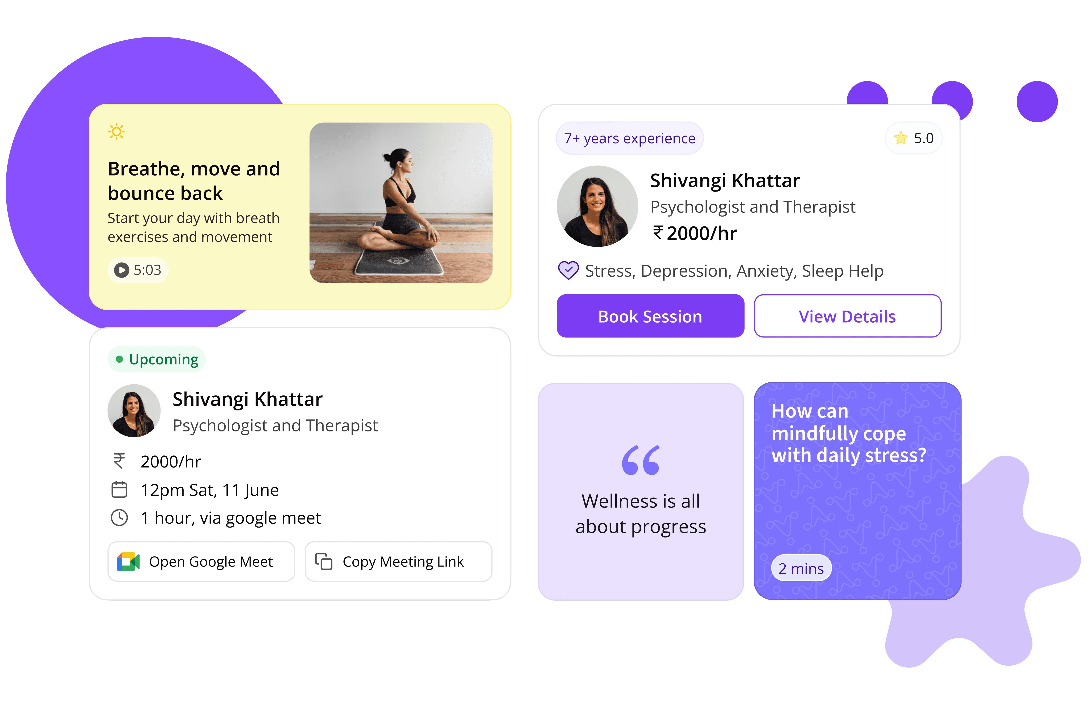 Connecting users to therapists that are most suited to address their concerns and build a safe space that encourages daily engagement with self-care.