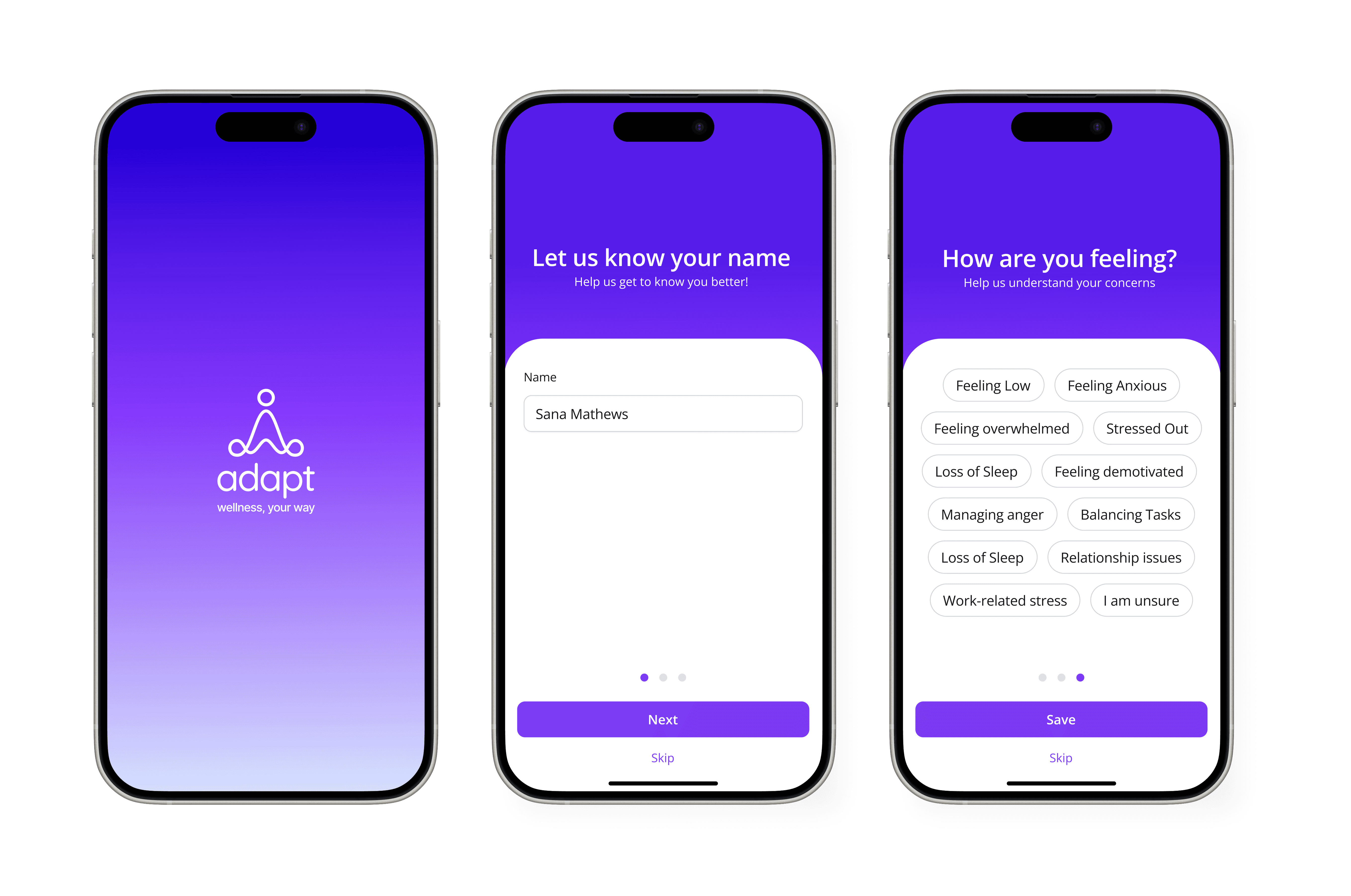 Adapt is a mental health organization, that provides therapy services to user through a network of verified therapists. I joined as the first and lead product designer to build their mobile app from conception to launch. I worked directly with the co-founders to translate their vision into a successful mental health app