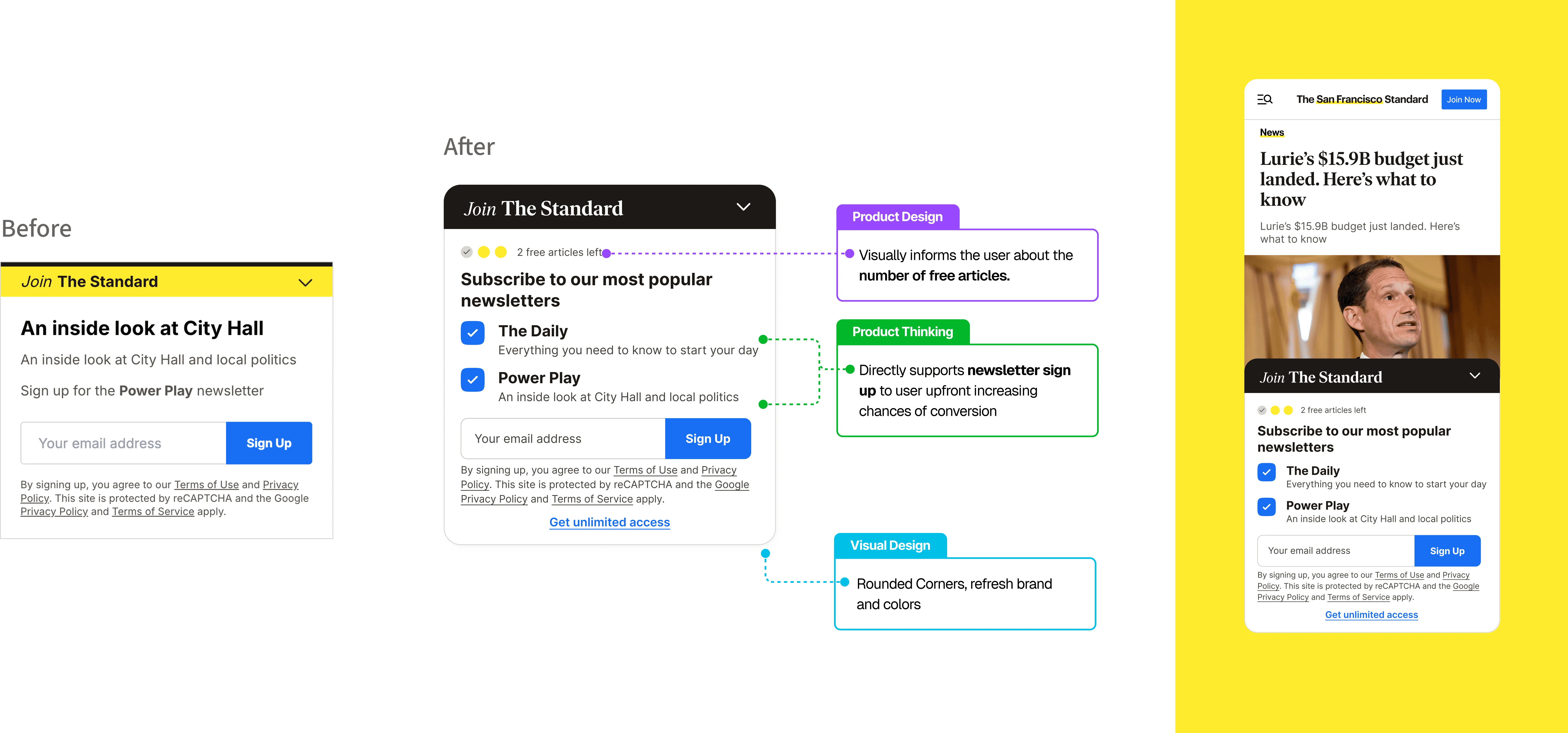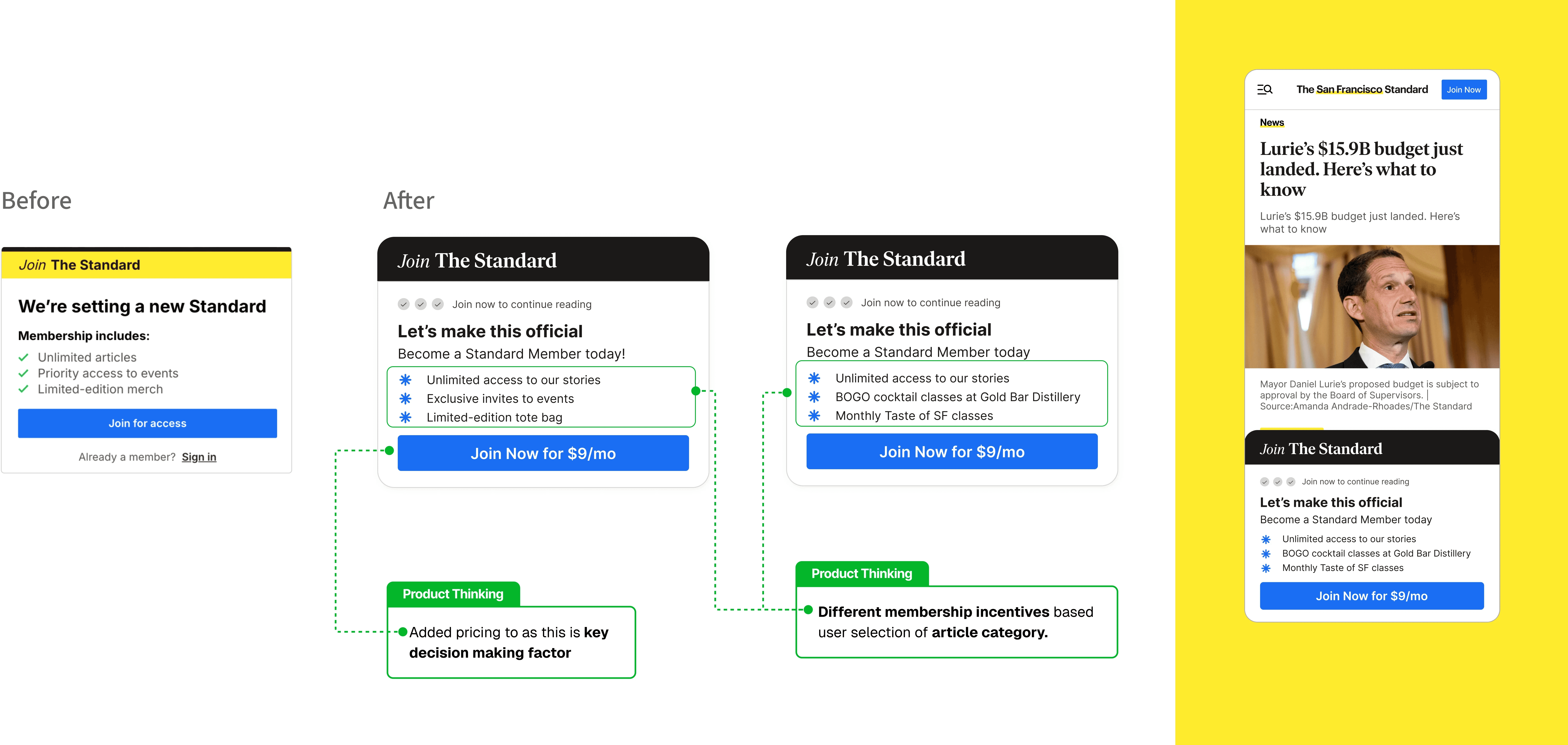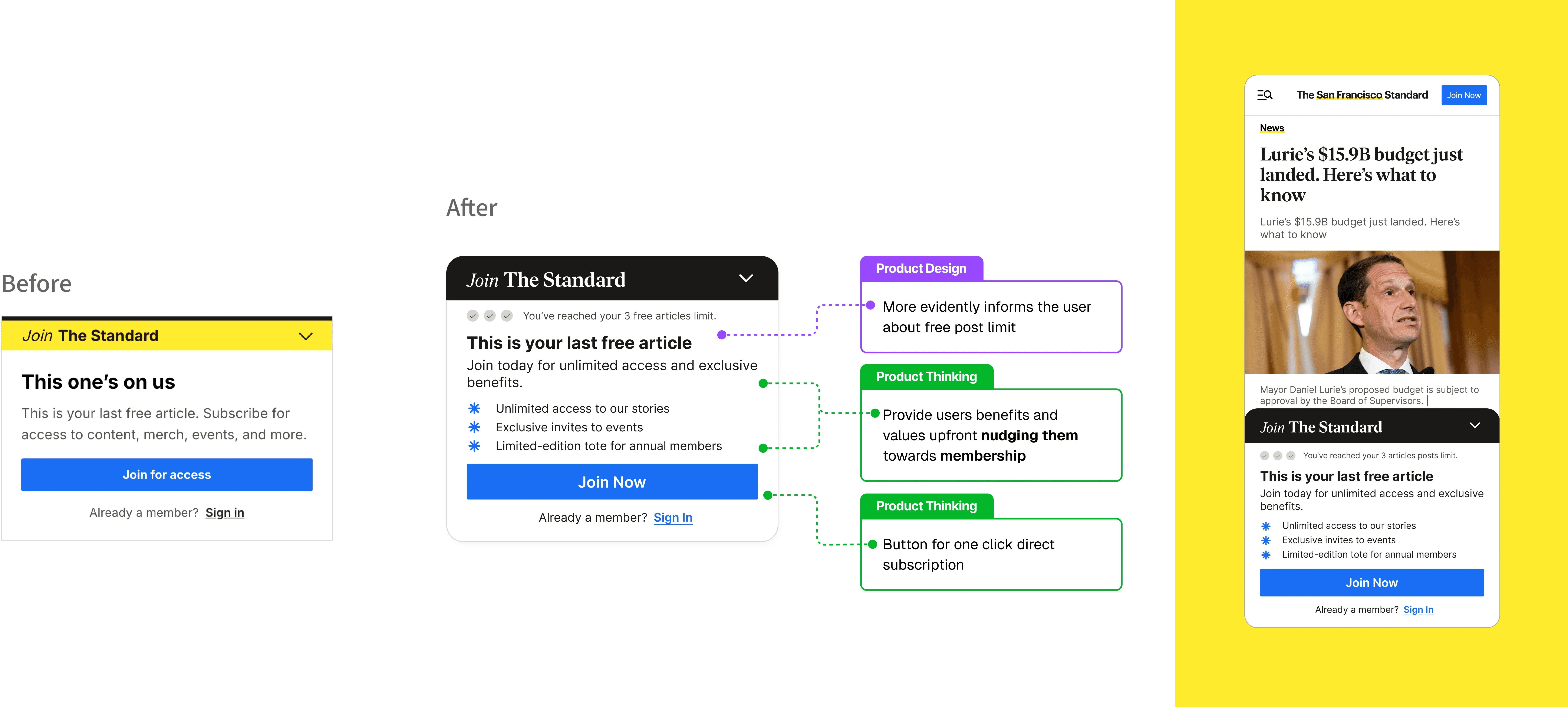 How might we redesign The SF Standard’s paywall to give readers a positive, mobile-optimized experience that seamlessly converts their interest into subscriptions?