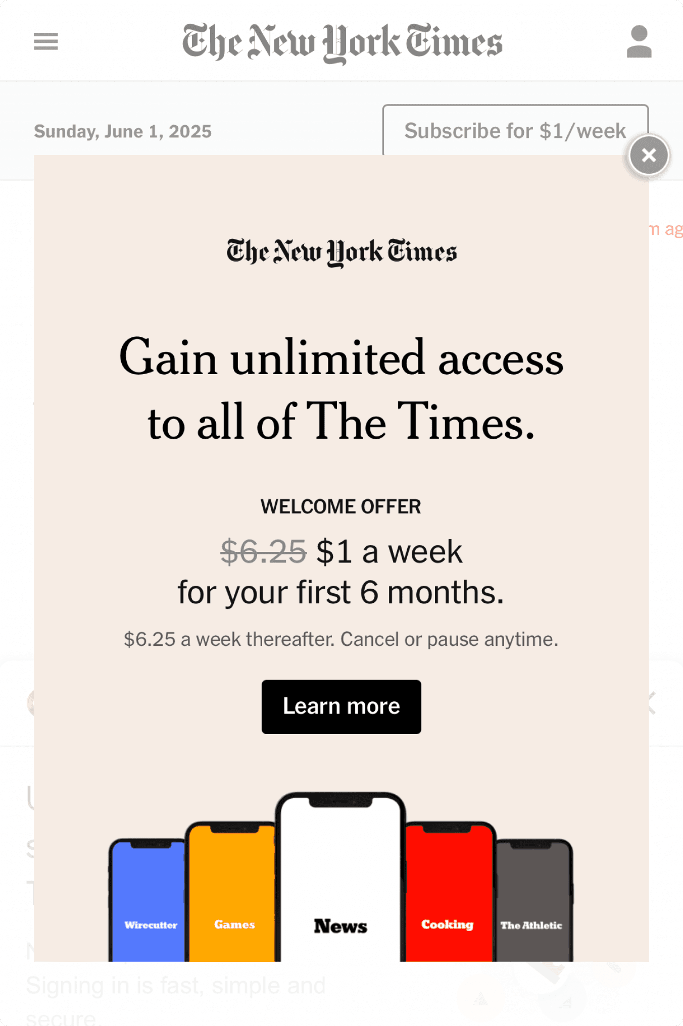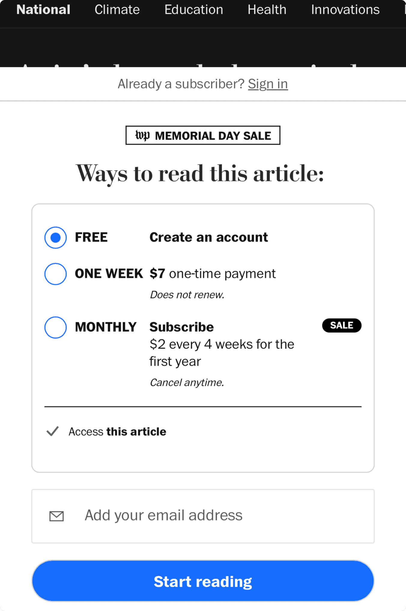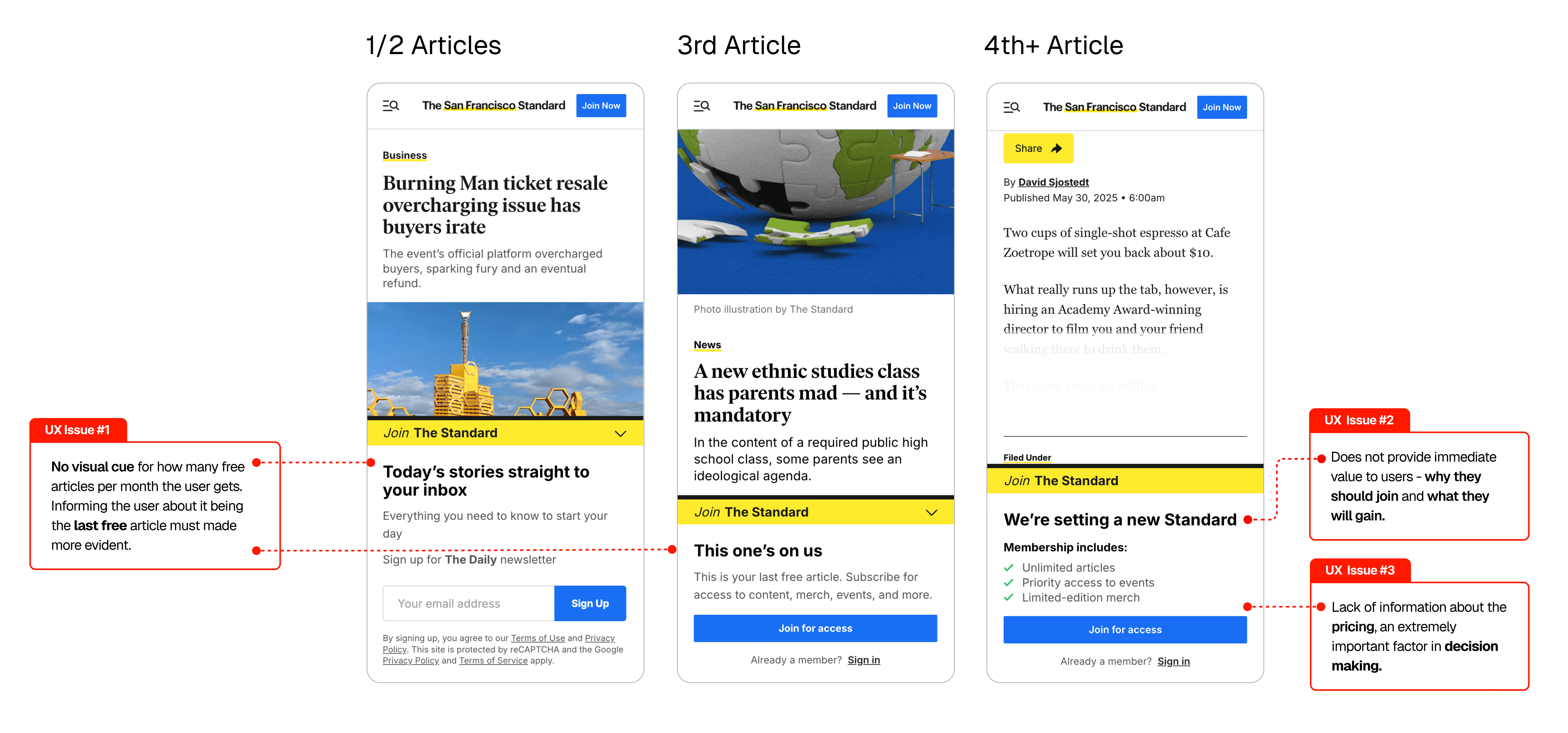 I analyzed the existing paywall experience across the entire article consumption flow to understand user friction points and identify opportunities for improvement.